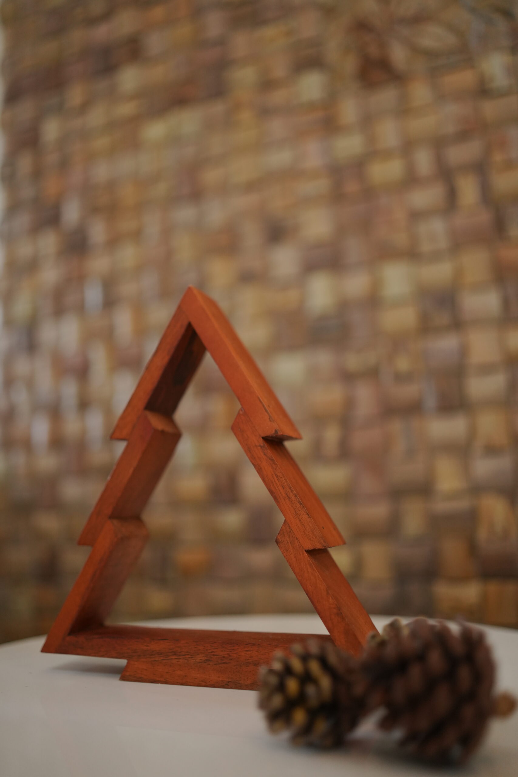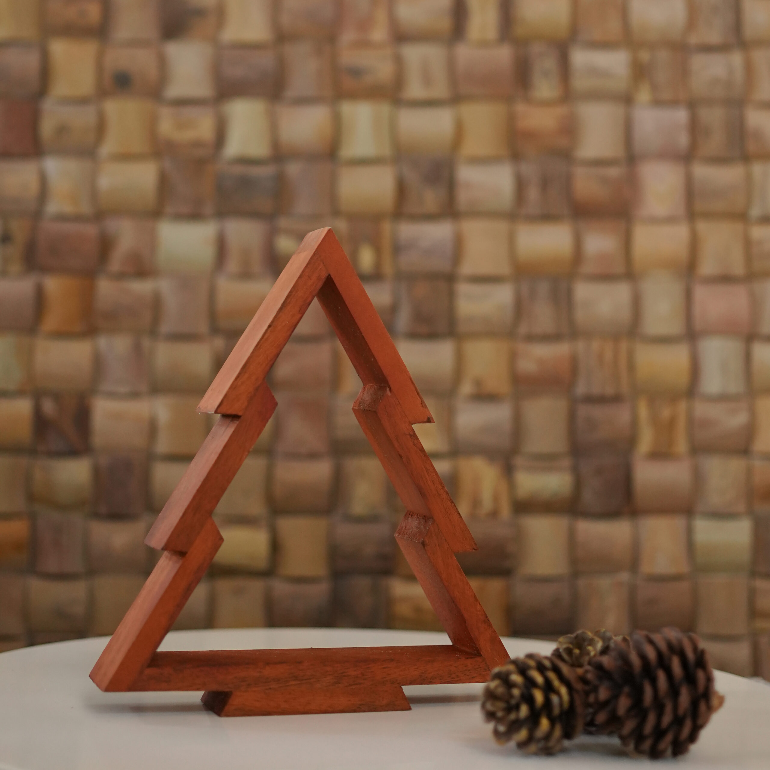 Natural wooden polish Candle is separate Height of the triangle is 10 inches