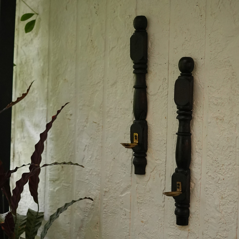 Made in Antique wood, the piece is fitted with a brass. Diya that can be used as a light holder.